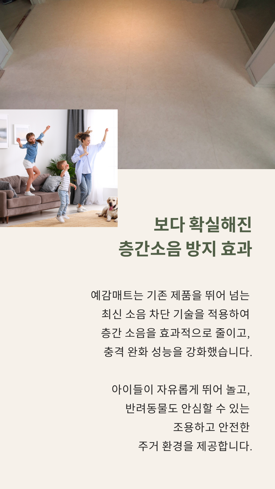 예감 매트는 기존 제품을 뛰어넘는 최신 소음 차단 기술을 적용하여